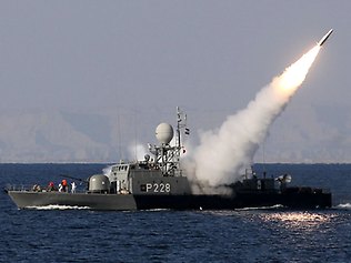 An Iranian navy boat fires a missile in a drill in the sea of Oman on Friday. Iran's navy chief has reiterated for a second time in less than a week that his country can easily close the strategic Strait of Hormuz at the mouth of the Persian Gulf, the passageway through which a sixth of the world's oil flows. Source: AP |